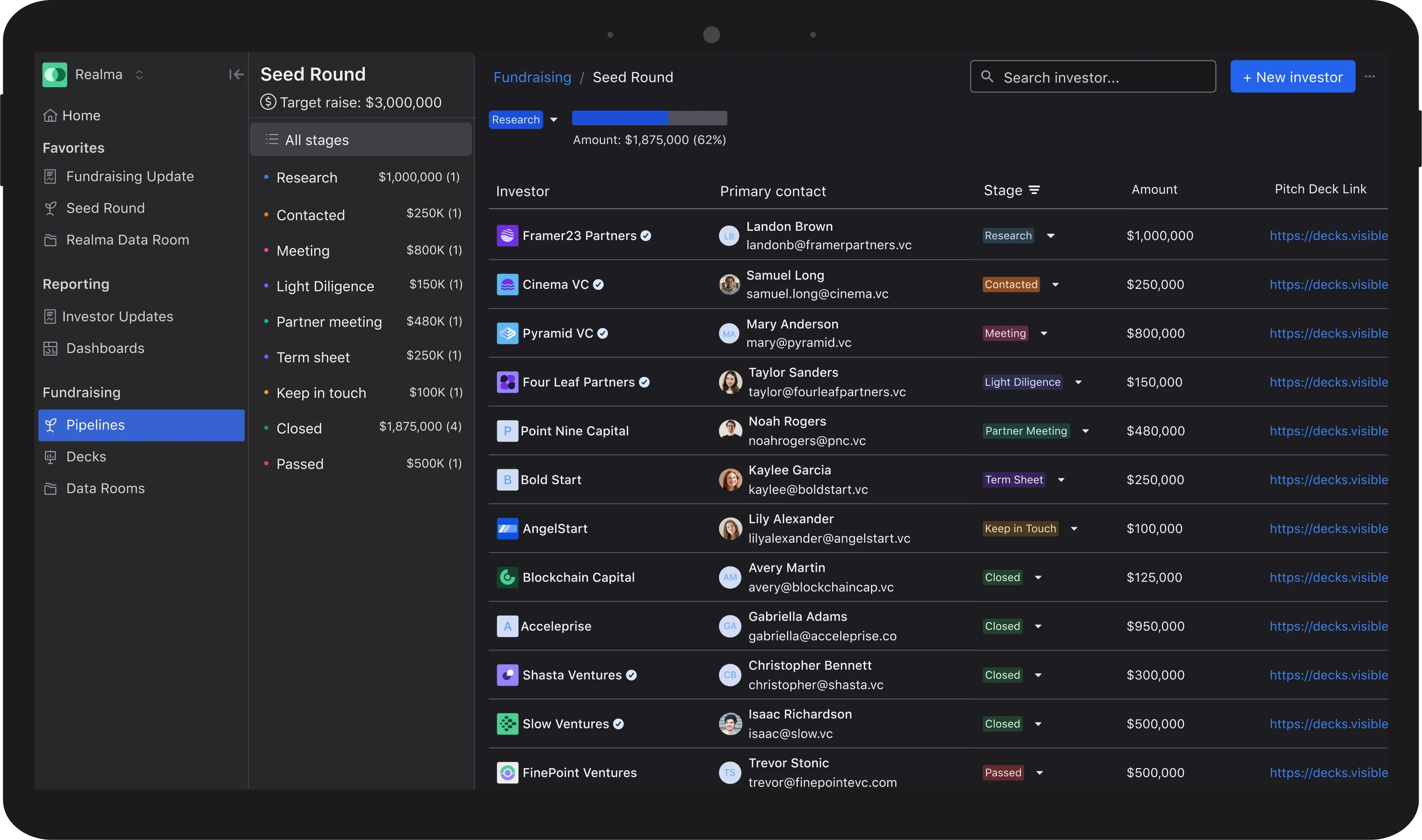 Manage investor relationships from start to funding with our investor database, investor pipelines, data rooms, pitch deck sharing, and investor updates.