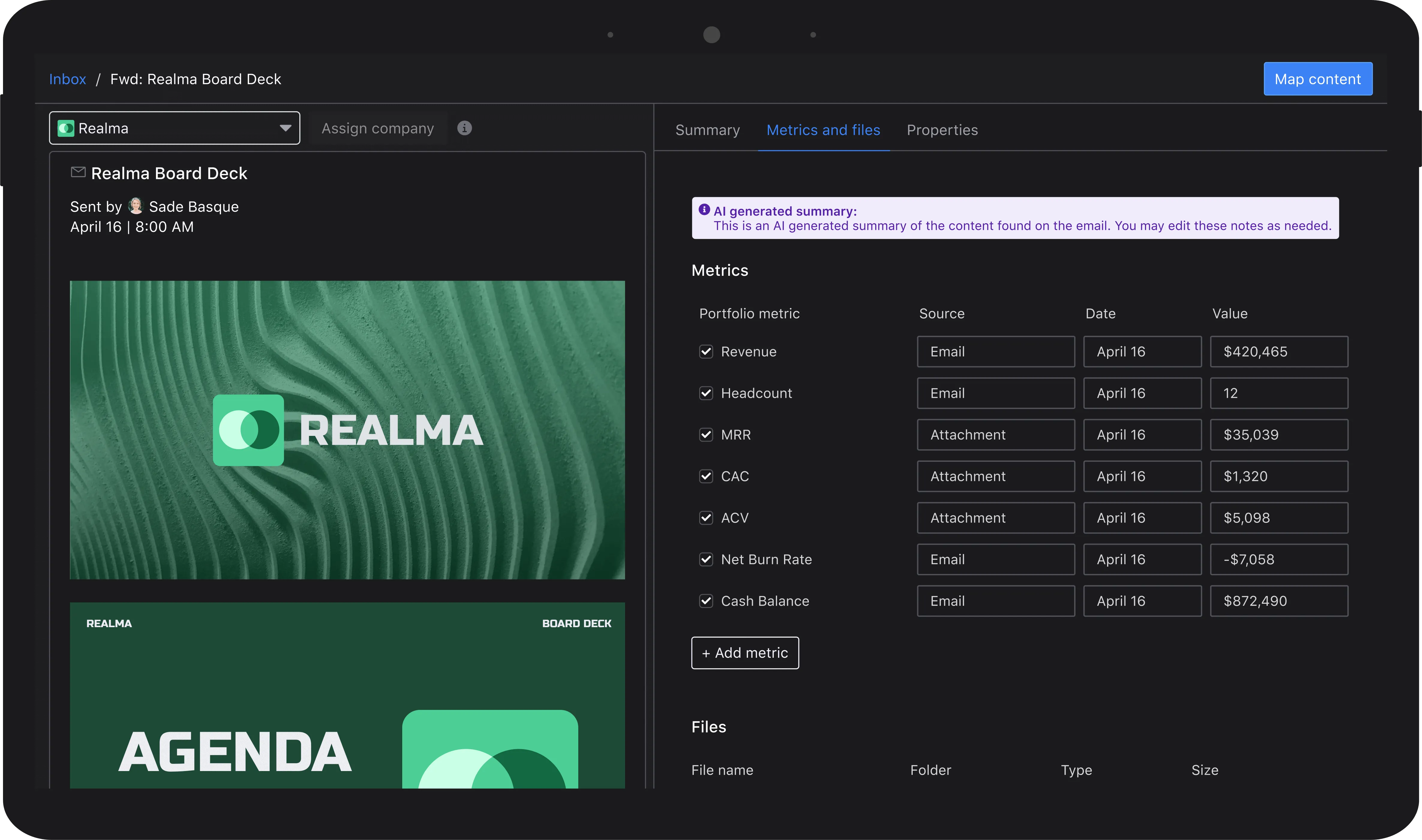 Combine Portfolio KPIs, Files, Notes, and Updates without tracking down data.