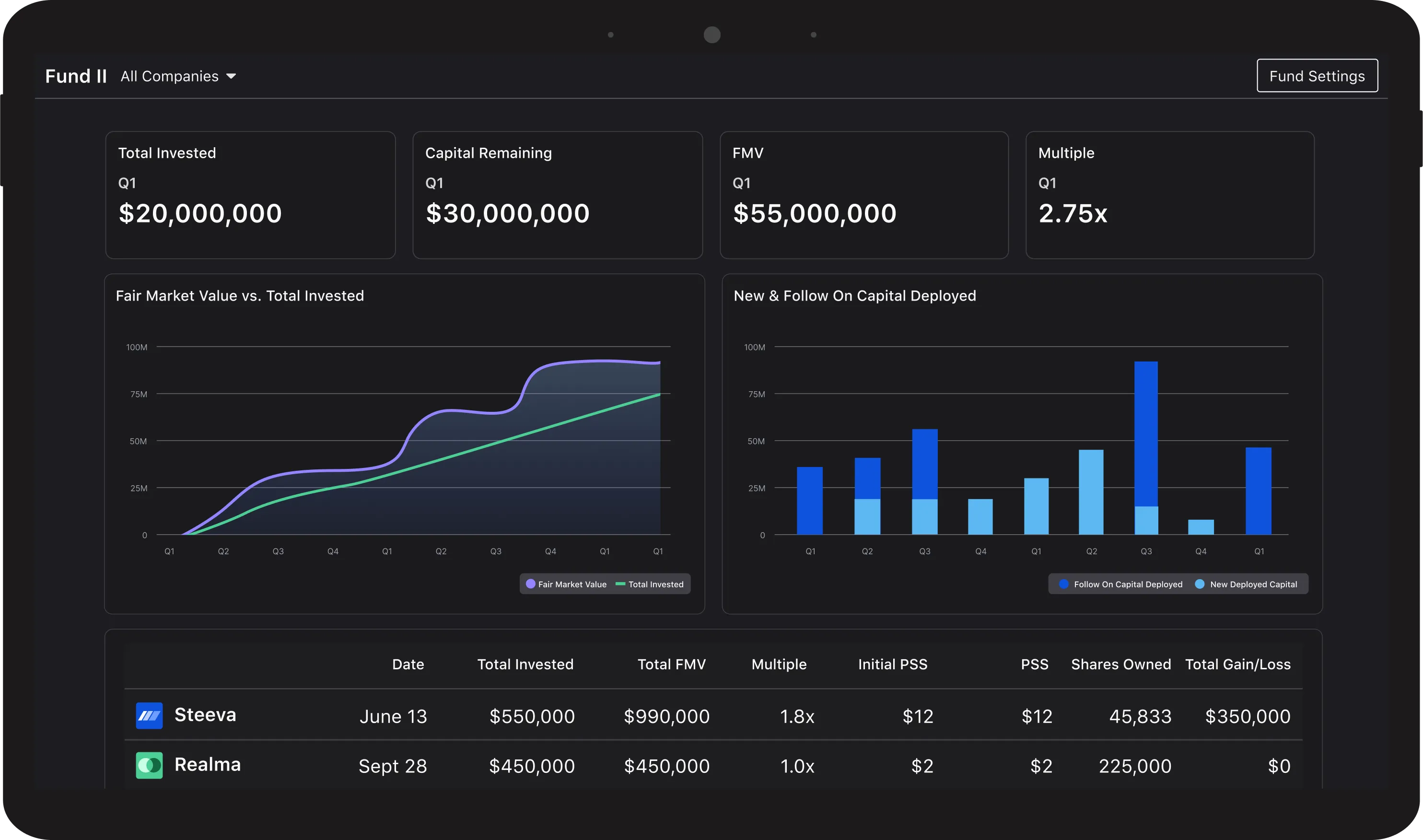 - Monitor direct and follow-on investments